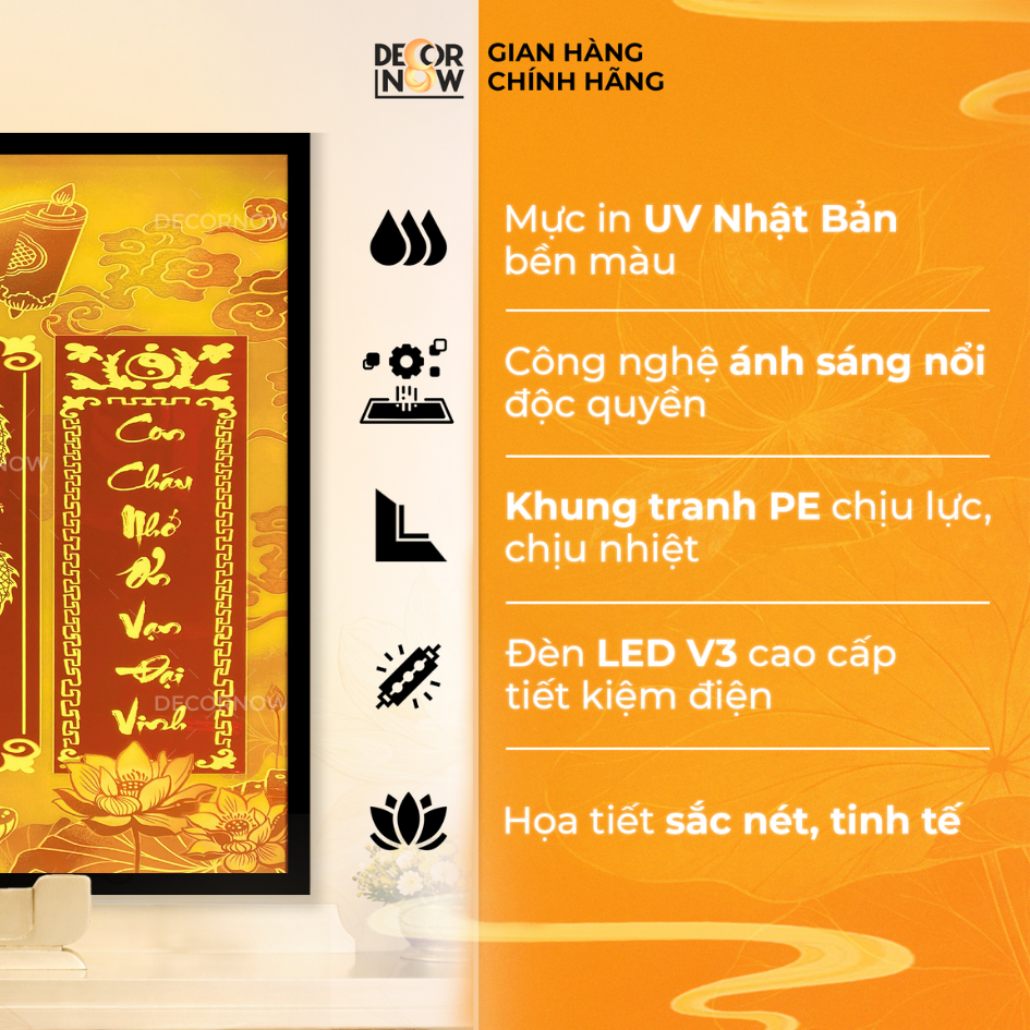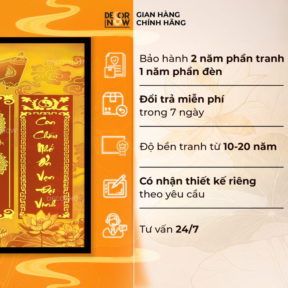 • Bảo hành 1 năm phần đèn, 2 năm phần thân Tranh