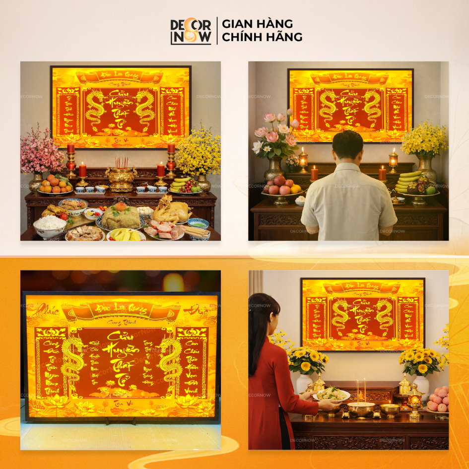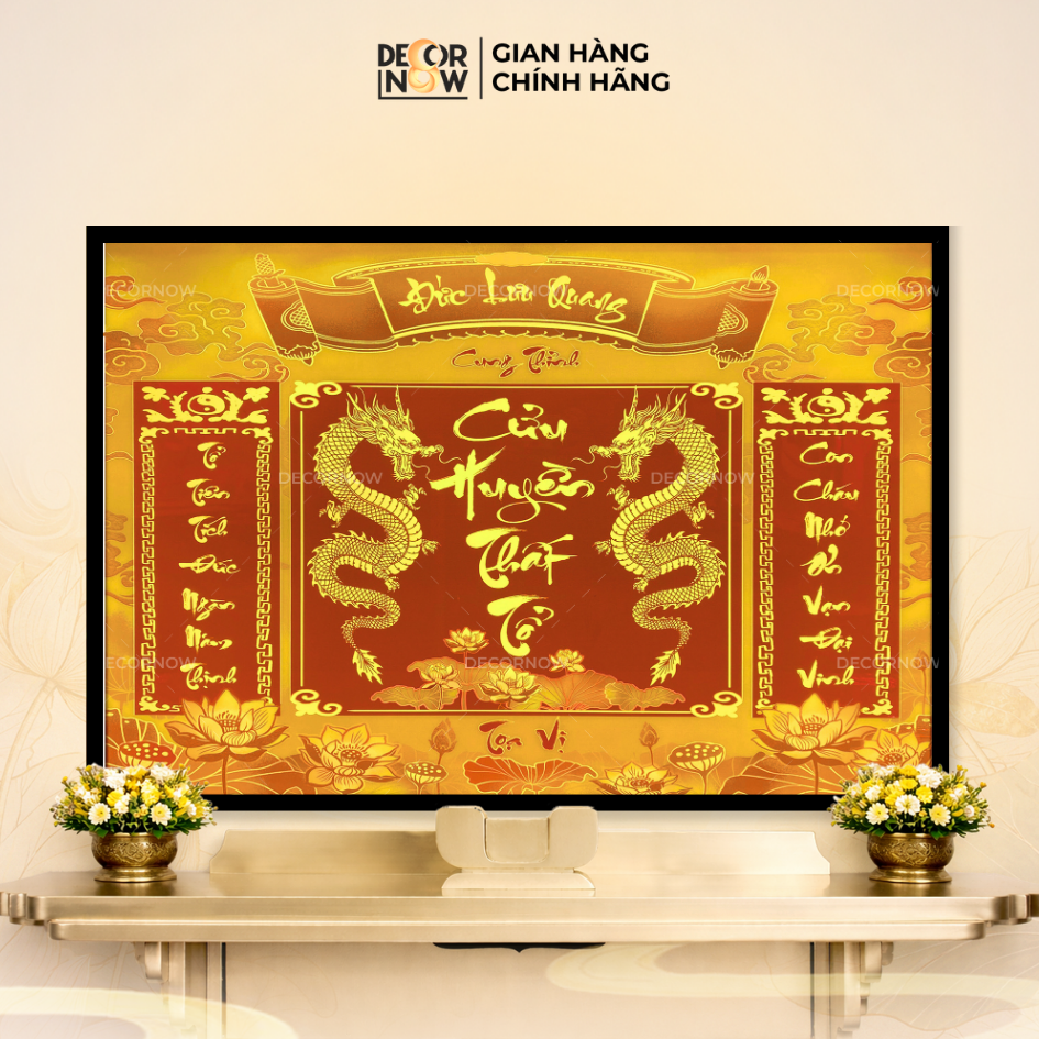 Tranh Hoằng Pháp Ngang Chữ Cửu Huyền Thất Tổ Rồng Bay DecorNow TC572